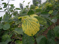 獼猴桃病毒病有獼猴桃花葉病。。表現(xiàn)為葉部有鮮黃色不規(guī)則線狀或片狀斑,病健部交界明顯,葉脈和脈間組織均可以發(fā)病,嚴(yán)重影響葉片的光合功能。