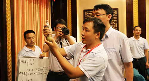 會議期間,領導、專家和種植大戶們到國光獼猴桃一體化管理示范園進行了觀摩考察。中國農科院植保所李香菊研究員主持召開了品質鑒定大會,對果品外觀、口感以及單果重、硬度、可溶固形物等數(shù)據(jù)指標進行現(xiàn)場測定和品質鑒定。中國植物生長調節(jié)劑專委會胡興啟主任(湖北省農業(yè)廳原副廳長、總農藝師)宣讀了品質鑒定結果:通過品鑒,領導、專家和種植大戶代表一致認為,用氯吡脲浸果處理的獼猴桃不僅能顯著提高產(chǎn)量,而且甜度增加,口感好,果型勻稱,商品性好,能大大提高種植收益。