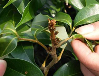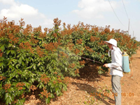對(duì)于花帶葉和沖梢的類(lèi)型,進(jìn)行脫小葉處理。在荔枝妃子笑品種上進(jìn)行化學(xué)藥劑脫小葉處理:國(guó)光乙烯利3-5ml/15kg,配合磷鉀營(yíng)養(yǎng)。白糖罌等品種上不進(jìn)行化學(xué)藥劑脫小葉處理,一般進(jìn)行人工摘葉處理。