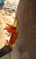 2.除卵、滅幼蟲:7-8 月份是成蟲產(chǎn)卵時(shí)間,成蟲產(chǎn)卵時(shí)在樹干上做“川”字或“U”字型刻槽,產(chǎn)卵于其中,可用石塊砸或用尖刀將卵挑出刺破即可。初孵幼蟲為害樹皮處有黃色膠質(zhì)物流出,用小刀挑開皮層,刺殺幼蟲。