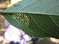 在華北1年發(fā)生5代,以蛹在被害葉片中越冬。第2年蘋果發(fā)芽時(shí)出現(xiàn)成蟲,4月下旬為發(fā)生盛期。以后各代成蟲發(fā)生盛期為第1代5月下旬到6月上旬;第2代7月上旬;第3代8月上旬;第4代9月中下旬。后期世代重疊。最后1代的幼蟲于10月下旬在被害葉的蟲斑內(nèi)化蛹越冬。