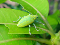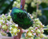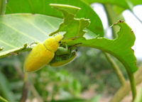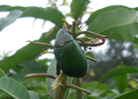 癥狀:金龜子的種類很多,危害芒果主要是銅綠麗金龜。銅綠麗金龜又名銅綠金龜子,是一種雜食性又是暴食性的害蟲(chóng),成蟲(chóng)咬食花穗、嫩梢、幼果,食量大,數(shù)量多,危害嚴(yán)重。其幼蟲(chóng)蠐螬俗稱雞蟲(chóng),是重要的地下害蟲(chóng)。