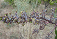 癥狀:是花期的主要病害,同時(shí)危害幼果、嫩葉,嚴(yán)重影響果實(shí)產(chǎn)量。該病主要為害花序、幼果和嫩葉;ㄐ蛑W钊菀资芨腥,梗上病斑褐色,病部常見(jiàn)白粉狀物,花梗環(huán)縊狀死亡,其上花朵、幼果隨之枯死脫落。嫩葉癥狀多在葉背,病葉常扭曲、畸形。幼果受害,果面出現(xiàn)近圓形的斑點(diǎn),嚴(yán)重時(shí)幼果全部被白粉狀物覆蓋,造成大量落果。