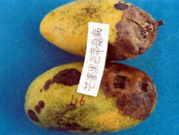 發(fā)病規(guī)律:病原為半知菌亞的擬莖點(diǎn)霉(Phompsis mangiferae Ajmad)、小穴殼菌(Dothiorella dominica)和球二孢菌(Botryodiplodia theobromae)以擬莖點(diǎn)霉為多見(jiàn)。病菌均以菌絲體和分孢器在病株和病殘物上存活。氣溫適宜時(shí),分孢器涌出分生孢子,借雨水傳播進(jìn)行初侵與再侵。果實(shí)病蟲(chóng)害或機(jī)械傷口,更易發(fā)病。