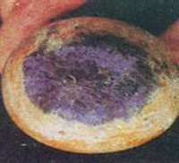 發(fā)生原因: 1、氣體原因。該病害的發(fā)生主要是受有害氣體污染的影響,特別是與二氧化硫的污染有關(guān)。表現(xiàn)在病果末端變黑變硬,果實(shí)過(guò)早成熟,無(wú)商品價(jià)值。該病病狀只出現(xiàn)在果的頂端,先在果頂出現(xiàn)淡黃色暈圈,逐漸發(fā)展為一淡褐色區(qū)域,并擴(kuò)大,變黑,最后完全覆蓋整個(gè)果頂部。隨著病情加重,黑色部分逐漸向果基方向延伸,占果實(shí)1/3~1/2后停止,果實(shí)其余部分仍保持正常顏色。病部組織失水萎縮、壞死,但不腐爛,且有堅(jiān)實(shí)感?拷敳糠N胚褐變壞死,摘下的果實(shí)果柄處無(wú)乳汁溢出,果實(shí)采收后不能正常黃熟,不能銷(xiāo)售。此外,還有果肉部分木栓化;有些果肉部分呈“海綿狀”,有中空現(xiàn)象;有的果肉形成“多團(tuán)塊組織”,果肉中含有分散的白色團(tuán)塊;“米粒狀病”,在果肉中有米粒大小的傷疤,傷疤的四周有棉花狀物環(huán)繞等。以上這些癥狀,尚未檢出其危害的病原菌,均屬生理性病害的范疇。2、果實(shí)缺硼和鈣。