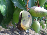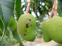 癥狀:薊馬是芒果產(chǎn)區(qū)梢期、花期和幼果期危害較為嚴(yán)重的害蟲(chóng)之一。薊馬好吸食幼嫩組織。吸食果汁后,果表面起小疙瘩造成果皮粗糙,危害嚴(yán)重時(shí)候造成芒果失去商品性。危害較輕者也是芒果生產(chǎn)后期產(chǎn)生“露水斑”、“老年斑”的可能原因之一。