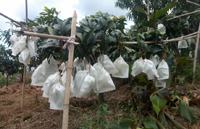 2、在第二次生理落果后,剪除影響果實發(fā)育的花梗與枝條,疏除畸形果,病蟲果及過小的敗育果,兩個果粘在一起的易拈惹蟲害,應(yīng)去除一個,一穗果保留3-4個發(fā)育正常的果即可。對未結(jié)果或開花不結(jié)果的枝條可酌情短截,促進(jìn)抽梢,培養(yǎng)來年的結(jié)果母枝,也可增加樹冠的透光度。