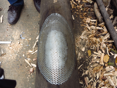 1、在樹(shù)干上用銼刀挖出一個(gè)樹(shù)洞,將樹(shù)洞邊緣及底部修整平(圖1);