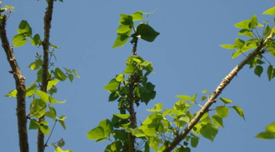 刺桐姬小蜂專一危害刺桐屬植物,該蟲生殖能力很強,通常一旦出現(xiàn)輕微感染,短時間內(nèi)便會擴散到全株。刺桐姬小蜂將卵產(chǎn)于刺桐嫩葉和葉柄組織內(nèi), 幼蟲在植物組織內(nèi)生長發(fā)育。由于植物組織受到幼蟲唾液分泌物刺激而增生, 呈水泡狀膨大, 并在葉片背面和葉柄上形成瘤狀蟲癭。蟲癭很快蔓延到全株, 致使全株葉片組織膨大,發(fā)展形成畸形、卷曲的病葉,嚴重影響整體景觀效映。幼蟲在蟲癭內(nèi)化蛹, 羽化的成蟲從蟲癭的羽化孔飛出。姬小蜂除了造成蟲癭, 使枝葉膨大、扭曲變形, 降低刺桐的觀賞價值外, 還會使形成蟲癭的枝、葉和旁邊的嫩枝、嫩芽枯死,葉片脫落。新發(fā)的葉片、嫩枝不斷受到感染, 無法長出健康的枝葉進行光合作用,到后期直接造成刺桐樹死亡。